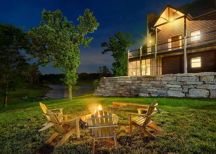 A Luxury Lakefront Chalet Resort 2 Pools Free Amenities Dock Kayaks Waterslide Lampe está localizada a aproximadamente 25 minutos a pé de Black Oak Amphitheater e oferece aos hóspedes a oportunidade de relaxar com jacuzzi e banheira quente.